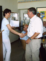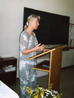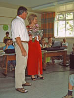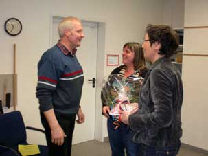 Die Vertreterin der Schulpflegschaft, Frau Kienitz, und der Vorstand des Fördervereins überreichten als Anerkennung einen Blumenstrauß.