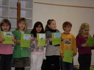 Auch die erste Klasse beteiligte sich an dem Verabschiedungsprogramm. Sie sangen „Viel Glück und viel Segen“ und trugen lebendig das Gedicht „Wann Freunde wichtig sind“ von Georg Bydlinski vor.
