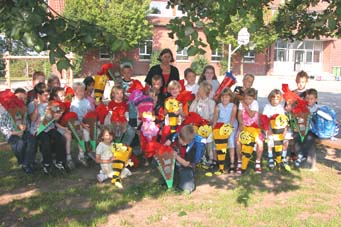 Am 12. August 2008 wurde voraussichtlich zum letzten Mal an unserer Schule eingeschult. Die Kinder des zweiten Schuljahres hatten eine kleine Begrüßungsfeier vorbereitet.