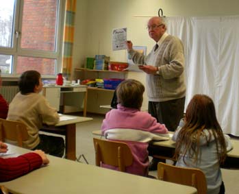 Ein Jahr lang hat Herr Erich Pink – pensionierter und passionierter Musikpädagoge – mit den Klassen 2 und 3 Instrumentalunterricht gemacht. Am Ende des letzten Schuljahres trat er an uns heran mit dem Angebot, im Rahmen des stundenplanmäßigen Musikunterrichts mit der 2. Klasse zu musizieren. Die Eltern wurden informiert und waren bereit für ein Musikinstrument zu sorgen. Gleichzeitig machte sich Herr Pink für die Beschaffung von Spenden stark. Der Förderverein stellte eine Summe von 1.500 € für die Anschaffung einiger Großgeräte zur Verfügung und das Musikhaus Averkamp sponserte, indem es Geräte bis zu endgültigen Bezahlung leihweise übergab. Am Tag unseres Schuljubiläums – von dem Herr Pink sehr begeistert war – erweiterte er sein Angebot auch die beiden 3. Klassen. Nach einem Jahr kann man nur ein positives Fazit dieser Aktivität ziehen. Bei der Verabschiedung des Schulleiters konnten sich viele Gäste von der Qualität des Musizierens überzeugen. Die ganze Aktion soll auch in den folgenden Jahren fortgesetzt werden, so dass alle Klassen 2 Jahre lang in den Genuss des Musizierens kommen. Herrn Pink für diese ehrenamtliche und engagierte Arbeit ein herzliches Dankeschön!