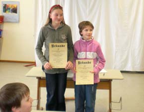 Alle Kinder erhielten zum Abschluss Urkunden und kleine Preise. Ein gemeinsames Lied „De Dissel“, begleitet von Herrn Vennes auf der Mundharmonika, beendete das Plattdeutsche Lesen.