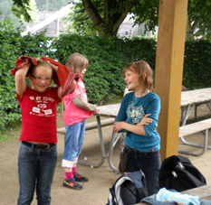 Zum Glück hatten auch alle Kinder Kleidung zum Wechseln mitgebracht; denn auch wenn das Wetter nicht strahlend sonnig war, so war es doch warm genug für freiwillige Bäder im Kahnteich und Wasserschlachten im Wasserspielbereich.