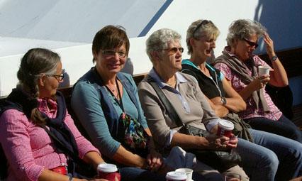 Gruppe den Ärmelkanal auf der Fähre. Mit einem letzten Blick auf die Kreidfelsen