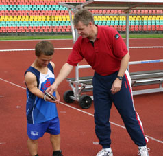 Mathias Mester holte bei den Deutschen Meisterschaften der Behinderten in Leverkusen im Kugelstoßen mit persönlicher Bestleistung (9,63 m) die Vizemeisterschaft. Den Meistertitel errang er im Speerwurf mit 34,18 m. Platz vier erreichte er im Diskuswerfen. Wieder tolle Leistungen von "Matze", der jetzt zu den Weltmeisterschaften im niederländischen Assen fährt.