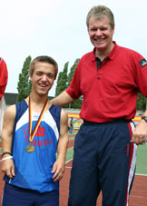 Mathias Mester hat bereits am 27. Juni 2012 das geschafft, was die Fußballnationalmannschaft erst noch werden möchte: Europameiser! Im niederländischen Stadskanaal holte er am 27. Juni 2012 mit einer weite von 37,38 m den Titel als neuer Europameister im Speerwerfen. Herzlichen Glückwunsch! Das Bild zeigt "Matze" bei der Siegerehrung.