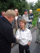 Mit dabei waren auch - von rechts - Uwe Dickmanns (Vorsitzender der DJK Eintracht Coesfeld - VBRS e.V), Hubert Hessel (Fachbereichsleiter Sport bei der Stadt Coesfeld), Herbert Hessel (Heimtrainer von Mathias Mester) und Ernst Averkamp (Vorsitzender der Nachbarschaft Wittenfeld aus Goxel) sowie - als Fotograf dieser Bilder und damit nicht auf den Fotos Holger Kaup (als Vertreter der Sponsoren)