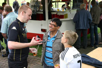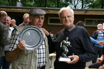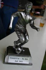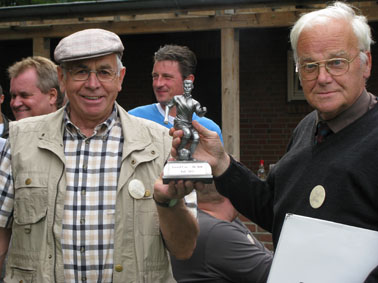 Bernhard Hölscher bedankte sich mit einer Fußball-Statue bei den den Gästen aus Holland für ihren bereits 13. Besuch in Goxel!