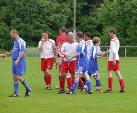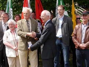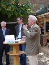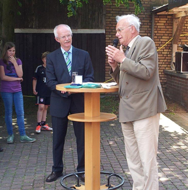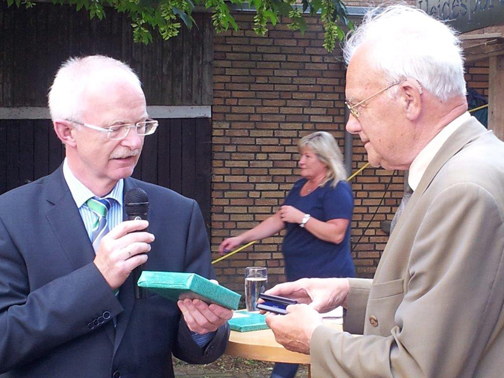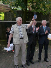 Beim Treffen mit den Freunden aus De Bilt (Niederlande) überreichte Bürgermeister Heinz Öhmann anlässlich der 30-jährigen Partnerschaft die Stadt-Plakette an Rens Kersten aus De Bilt. Ohne ihn – im Zusammenspiel mit Bernhard Hölscher – wäre diese Partnerschaft zwischen den Fußballern aus den Niederlanden und Goxel nicht denkbar.